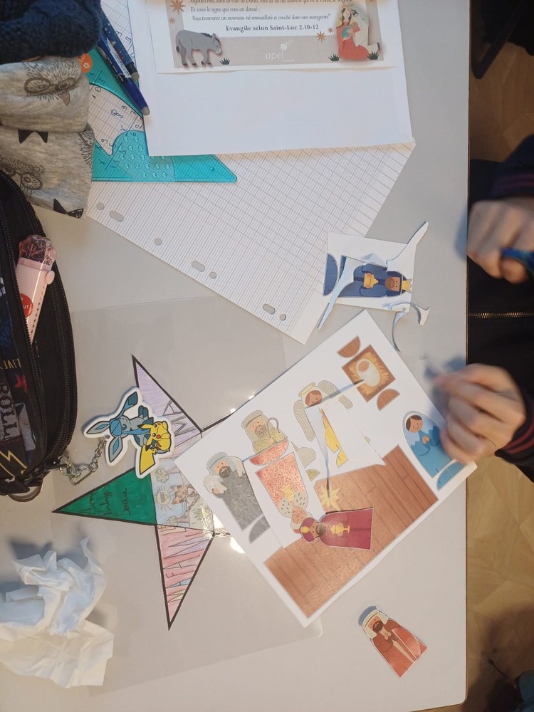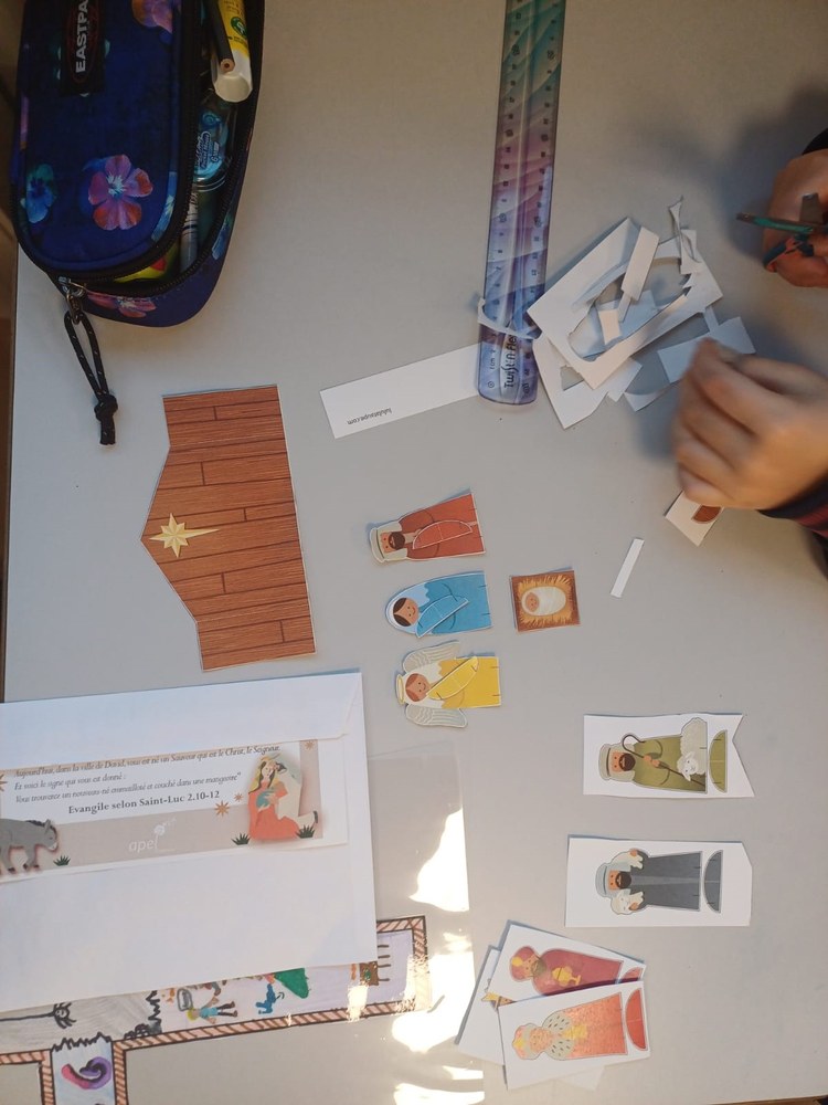 Le 10 décembre 2024, les élèves de CM2 ont eu la chance de participer à un atelier spécial organisé par l'Apel. Cet atelier, centré sur la thématique de Noël, leur a permis de découvrir l'art du découpage de crèches de Noël, une activité créative qui a animé leur journée.