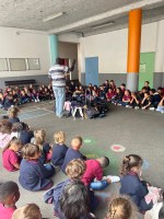 Pour cette nouvelle année scolaire, le père Yves est venu dans notre école afin de bénir les cartables des enfants du primaire. Symboliquement, ce sont les cartables des CP qui ont été déposés au centre de tous les enfants.