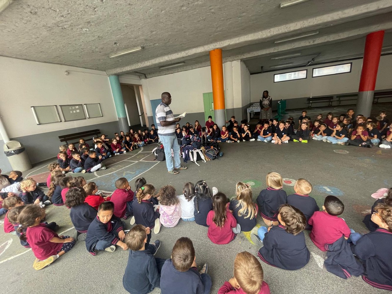 Pour cette nouvelle année scolaire, le père Yves est venu dans notre école afin de bénir les cartables des enfants du primaire.